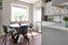 Ljust och fräscht kök med sprutlackerade luckor i en stilren ljusgrå färg, vitt/beige kakel och en marmorimiterad bänkskiva. Den maskinella utrustningen består av spis med ugn och kombinerad kyl/frys (2021). Här finns gott om förvaring utav flertal skåp samt en trevlig matplats vid fönster som rymmer bord med plats för 4-6 personer. Laminatgolv och ljusgråmålade väggar.