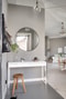 På bekvämt våningsplan välkomnas ni in till denna väldisponerade enrummare, en bostad som direkt slår an tonen av modernitet och exklusivitet. Entrén ger med det påtagliga ljusinsläppet ett välkomnande intryck, tillsammans med de gråmålade väggarna mot det mörka klinkergolvet. Genomtänkt utformad med inbyggda garderober i anslutning i vacker grå nyans som löser förvaring och avhängning på ett praktiskt och tilltalande sätt. Här finns även plats för mindre hallmöbel eller sideboard om så önskas.