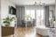 Rymligt vardagsrum med fönster mot innergården. Rummet är inrett med målade väggar som kompletteras med en snygg fondvägg. Utgång till den stora balkongen i väster.