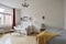 Ljuset från det stora fönsterpartiet slår oss direkt när vi kommer in. Här finns inbyggda garderober, plats för säng och matbord samt soffgrupp för den som önskar.