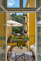 Tvättstuga och mysig innergård med sitttgrupp.