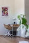 Vardagsrummet bjuder in till socialt umgänge och ger en känsla av rymd tack vare generös takhöjd. Stora fönster och en fransk balkong ger fantastiskt ljusinsläpp. Ljusa målade väggar samt ett fint trägolv i ask som också löper vidare i köket.