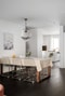 Vardagsrummet är luftigt och lättmöblerat med plats för både en generös soffgrupp och matplats. De stora glaspartierna släpper in rikligt med dagsljus och skapar en härlig rymd i rummet. Här suddas gränsen mellan inne och ute ut när balkongdörrarna öppnas – en perfekt miljö för både vardag och umgänge. Rummet bjuder in till såväl lugna hemmakvällar som sociala middagar i gott sällskap.