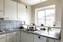 I öppen planlösning mot vardagsrummet finner vi det ovanligt stora u-formade köket som verkligen bjuder in till matlagning och umgänge. Mot fönstersidan finns möjlighet att sitta 2-4 personer. Vita luckor med rostfria beslag samt melerad laminatbänkskiva. Maskinell utrustning i form av spishäll, ugn, micro, fullstor kyl/frys, fläkt och diskmaskin.