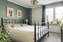 Harmoniskt och rogivandesovrum med plats för dubbelsäng. Rummet nås från köket och har laminatgolv och en harmonisk grön färg på väggarna.