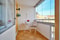 Ljust härligt kök med rymlig matplats intill stora fönster med vidsträckt utsikt i och med det vidsträckta läget högst upp i huset. Nyare persienner i alla fönster.