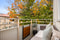 Trivsam balkong med plats för loungesoffa och bord, omgiven av grönskande träd i trevligt sydöstläge.