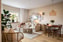 Vardagsrummet är fantastiskt trivsamt med plats för soffa och tillhörande soffbord. Här ryms även en matgrupp för 4-6 personer samt plats för ytterligare möblemang om så önskas. Målade väggar i beige och mycket fin ljus enstavsparkett på golvet.