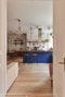 Kök och vardagsrum i öppen planlösning. Köket är utrustat med diskmaskin, kyl, frys, gasspis, fläkt och ugn. Tack vare den öppna planlösningen ryms här ett matbord för 8-10 personer. I vardagsrummet ryms soffgrupp och tv-möbel.