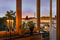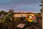 Möblerbar balkong med högt och fritt läge med utsikt över trädtoppar, hustak och Hammarbybacken.
