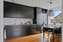 Köket är både stilrent och funktionellt med släta luckor, bänkskiva i laminat och kakel på stänkytorna. Här erbjuds generösa arbetsytor och goda förvaringsmöjligheter genom skåp, lådor och vitrinskåp. Den maskinella utrustningen består av inbyggd ugn och mikro, integrerad diskmaskin samt kyl och frys, allt smakfullt inbyggt för en enhetlig helhet. Det finns även plats för matbord, vilket gör köket till en naturlig samlingspunkt i hemmet.