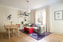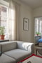Badrummet är också nyrenoverat med klassiskt svartvitt klinkergolv, vita kaklade väggar och dusch bakom glasvägg. Planlösningen är kompakt men mycket effektiv och ger en oväntad rymd. Här samspelar moderna materialval med vackra originaldetaljer som spegeldörrar, spanjolett handtag och generös takhöjd.