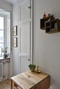 Välkomnande kapprum med bevarad hatthylla i original. Generös takhöjd om 2,8 meter och vackra originaldetaljer som speglade dörrar, överljus, paneler och tidstypiska snickerier. Vitoljade originalgolv bidrar till rummets harmoniska känsla.
