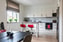 Modernt kök med stilrena luckor, gott om arbetsytor på slitstarka bänkskivor och full maskinell utrustning. Trägolv skapar en varm känsla och här finns plats för matbord för både vardag och fest. Kan enkelt omvandla den väl tilltagna matplatsen till ett extra sovrum vid behov utan att kompromissa med lägenhetens rymd och luftighet.