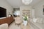 Rymligt sovrum med gott om plats för dubbelsäng och spjälsäng. Här finns en extra hel garderobsvägg för ordentligt med klädförvaring. En separat klädkammare används idag som hemmakontor. Ljusa väggar och samma fina parkettgolv ger ett lugnt och enhetligt intryck.