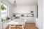 Modernt kök med bra förvaring bakom vita skåpluckor. God plats för matgrupp framför härliga fönster som sträcker sig i öst. Maskinell utrustning i form av kyl och frys, diskmaskin, mikro, spishäll och ugn.