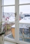 Lägenheten ligger med högt hörnläge och en fantastisk utsikt, samtidigt som hela hemmet har begränsad insyn. Från balkongen i söderläge blickar du ut över staden och från vardagsrummets djupa fönstersmyg i väst kan du njuta av en underbar vy över kulturhus och gårdar. Lugnet är påtagligt i alla hemmets delar och här kan du ostörd ha fönster och balkongdörr öppna under sommarhalvåret.