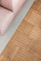 Vardagsrummet har plats för soffa och matbord för 4-6 personer. Härifrån når vi även balkongen.