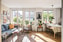 Rymligt vardagsrum med ljusa ytor, stilrena väggar och ett snyggt golv som knyter ihop rummet. Här finns gott om plats för både soffgrupp och matbord. Det stora fönsterpartiet bidrar till ett härligt ljusflöde.