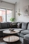 Vardagsrummet är rymligt och lättmöblerat, med plats för både soffgrupp och möjligheten att nyttja ytan till exempelvis arbetshörna eller fåtölj. Härifrån når du den generösa uteplatsen – ett extra rum under årets varmare månader där du kan njuta av solen, en kopp kaffe eller en bok i lugn och ro.