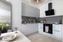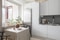 När du kliver in möts du av ett stilrent och exklusivt kök i dova grå toner, fullt utrustat med moderna vitvaror och generösa arbetsytor. De släta skåpsluckorna, de diskreta svarta handtagen och den matta grå bänkskivan ger köket ett harmoniskt och elegant uttryck. Här finns gott om förvaring bakom höga överskåp, en rymlig diskbänk samt integrerad ugn, spishäll och diskmaskin. Köksdelen är helt ny och designad för att vara både estetiskt tilltalande och praktisk i vardagen.