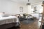 Allrummet ligger i öppen anslutning till det välplanerade köket och skapar en luftig atmosfär. Här finns utrymme för både soffgrupp med tillhörande möblemang samt större säng. Ett stort fönsterparti bidrar med mycket dagsljus. På golvet ligger parkett och väggarna är tapetserade.