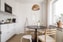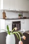 Till vänster i hallen nås det till lika stilrena som estetiskt tilltalande köket som renoverades under 2021. Här erbjuds fina förvaringsmöjligheter för kökets alla redskap via vita över- och underskåp samt bra arbetsytor genom en gedigen arbetsbänk på vardera sida av köket. Ovan arbetsbänken löper ett tidlöst vitt kakel. Den maskinella utrustningen består av spis med ugn, fläkt, inbyggd micro, integrerad diskmaskin samt kyl & frys. Matplatsen får sin naturliga plats invid fönsterpartiet med grönska utanför. Längs golvet löper ett snyggt vinylgolv.