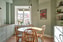 Gedigna brädgolv och gröna väggar. Ett generöst vardagsrum med plats för både soffgrupp och matgrupp om så önskas. Vardagsrummets fönster ligger mot en lugn gata med sjöglimt.