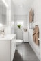 Badrummet renoverades 2024 i samband med stambytet och håller en modern och stilren standard. Här finns dusch, kommod med bra förvaring och spegelskåp. Bekvämligheter som tvättmaskin, handdukstork och golvvärme höjer vardagskomforten. Golvet är lagt med grått klinker och väggarna klädda i vitt kakel i ett brett, elegant utförande.