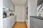 Stilsäkert kök med ljusgrå skåpsluckor matchat med bänkskiva och ho i ljus stenkomposit. Bra förvaring i städskåp, utdragslådor och köksskåp. Maskinell utrustning med induktionshäll, köksfläkt infälld i köksskåp, integrerad diskmaskin, integrerad kombinerad kyl/frys, inbyggnadsugn och inbyggd mikro.