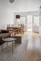 Den naturliga samlingsplatsen är det mysiga allrummet med social och öppen planlösning mot köket. De stora fönsterpartierna skänker rikligt med ljus och skapar en rymlig atmosfär. Rummet är mycket välplanerat och här ryms en större soffgrupp med tillhörande möblemang samt ett matbord. Väggarna är tidlöst vitmålade i kombination med ett stilrent laminatgolv.