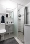Badrum utrustat med dusch, WC, handfat samt tvättmaskin.