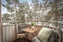 Mysig balkong med utsikt mot föreningens grönskande innergård.