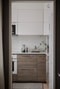 Köket är stilrent och välplanerat, med gott om arbetsyta och bra förvaring. Sovrummet ligger mer avskilt och rymmer dubbelsäng samt garderober. Badrummet är helkaklat och tidlöst.