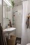 Badrum: Stambytt badrum med mörkgrått klinkergolv och vita kaklade väggar. Badrummet är utrustat med WC, handfat, spegelskåp och dusch.