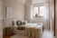 Stor inre hall med plats för hemmakontoret. Här finns en kyl/frys som ingår. Vacker fiskbensmönstrad parkett som sedan fortsätter in i vardagsrum och sovrum.