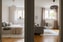 Stambytt badrum med mörkgrått klinkergolv och vita kaklade väggar. Badrummet är utrustat med WC, handfat, spegelskåp och dusch.
