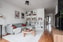 Köket har en halvöppen planlösning mot det rymliga vardagsrummet – en social och trivsam yta som rymmer både soffgrupp, TV-möbel och skrivbord för den som önskar en arbetsplats hemma. De stora fönstren och den franska balkongen bidrar till ett fantastiskt ljusflöde genom hela rummet och ända in i hallen.