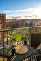 Från vardagsrummet nås den härliga balkongen i soligt söderläge. Här sitter man fritt från insyn med vy över området.