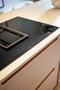 Lägenheten om 103 kvadratmeter är genomgående formgiven med stor omsorg, där kök, vardagsrum och matsalsdel binds samman i en öppen och välavvägd helhet. Diagonallagda golv skapar rörelse och riktning genom rummen, medan avancerade vitvaror och integrerad förvaring bidrar till ett rent och sofistikerat uttryck. Köket är platsbyggt i trä och kompletteras av en generös köksö som blir en självklar samlingspunkt.