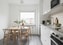 Det nya köket har en tidlös och elegant utformning med vita skåpsluckor, generösa arbetsytor och moderna vitvaror som integrerad diskmaskin, inbyggd mikro samt en stilren ugn och spishäll. Den ljusa stenliknande väggen ger köket ett exklusivt intryck och gör rummet lika praktiskt som vackert.