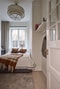 Hela lägenheten är målad i vitt och de vackra originalgolven är väl omhändertagna, slipade och oljade i vitt.