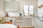 Stilrent kök med gott om arbets- och förvaringsutrymmen bakom den ljusa inredningen. Den maskinella utrustningen består av en spis, ugn, fläkt, diskmaskin samt kyl/frys. Ett fönster vetter ut mot den lugna gatan. Även här fönster i två väderstreck.