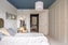 Generöst sovrum med ljust fiskbensparkett och blått inmålat tak. Sovrummet erbjuder utsikt mot Högalidskyrkan, goda förvaringsmöjligheter och plats för större säng.