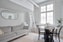Det rymliga och lättmöblerade rummet erbjuder plats för både soffgrupp och matbord för 4–6 personer. Här finns idag ett praktiskt sovloft med plats för 120 cm säng, vilket frigör yta och skapar en tydlig rumsindelning. Köket är fullt utrustat med goda förvaringsmöjligheter, kyl, spis och ugn samt generös arbetsyta för den matlagningsintresserade. Stilrena mörka luckor kombineras med vit bänkskiva och dekorativt marockanskt kakel.