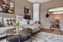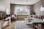 Till höger finner du vardagsrummets - hemmets hjärta. Här pryder en vacker fiskbensparkett golvet och i hörnet står en alldeles ljuvlig kakelugn (ej i bruk) som sätter rummets karaktär. De stora fönstren släpper in ett gott ljusinsläpp och den fria vyn över gården och området är väldigt uppskattad. Vardagsrummet ger dig utrymme att möblera med den stora soffgruppen med tillhörande möblemang. Även här bryter en vit panelvägg mot de i övrigt brun/beige väggarna.