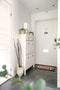 En ljus och välkomnande hall med stilren och tidlös utformning. Väggar och snickerier i ljusa nyanser skapar ett luftigt första intryck, samtidigt som det mörka klinkergolvet ger en snygg kontrast och är både slitstarkt och lättskött. Golvvärme bidrar till extra komfort och en behaglig känsla året om.