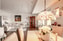 Ljusa väggar tillsammans med det varma trägolvet ger rummet en harmonisk och ombonad känsla. Infällda spotlights i taket bidrar till en jämn och behaglig belysning. Här finns gott om utrymme för både umgänge och avkoppling, och rummet lämpar sig perfekt för såväl vardagsliv som sociala tillställningar.