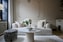 Det exklusiva köket från Inneform går ton i ton med väggfärgen och erbjuder en stilren helhet. Snygg bänkskiva i terrazzo bryter av. Köket är fullt utrustat med två diskmaskiner, stor induktionshäll, kyl/frys samt generös förvaring med integrerad belysning. Köket och allrummet separeras av en industriglasvägg.