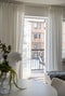 Här är väggarna vitmålade för att ge så stor valfrihet som möjligt när det kommer till färgsättning av möbler och textilier. Golven är mattlackad ekparkett som tål att slitas på och aldrig blir omoderna.